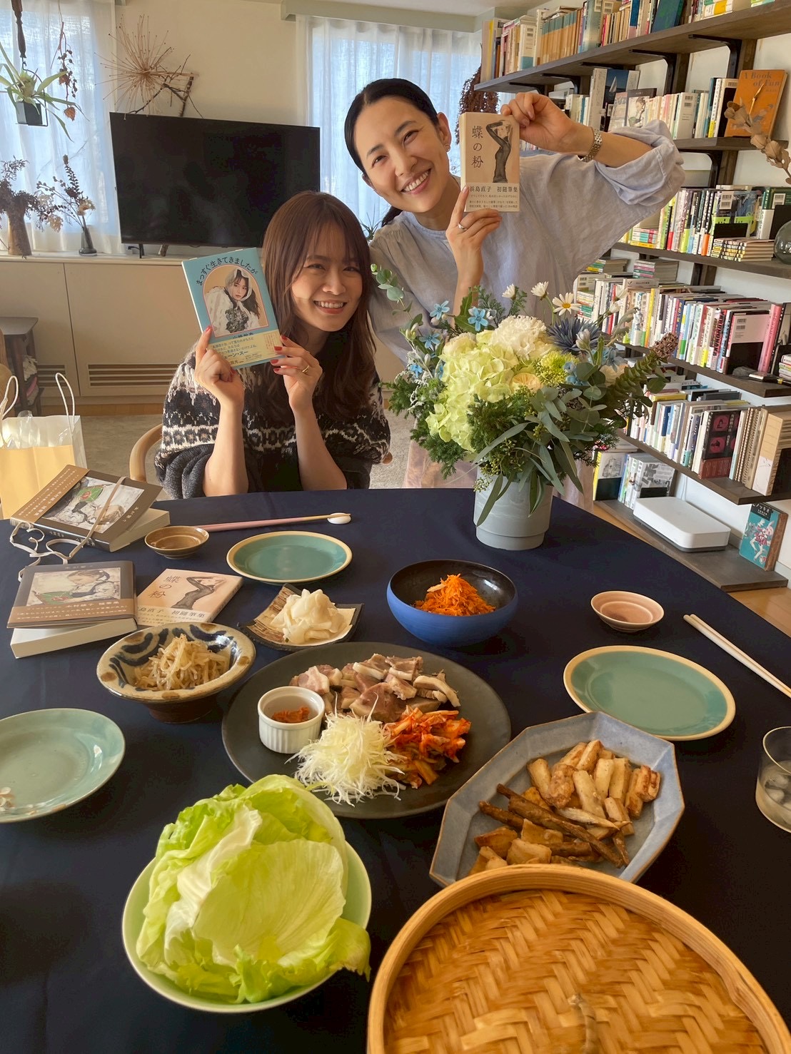 浜島直子さん、山崎怜奈さんとはそれぞれ仕事をきっかけに出会い、以来、親しくさせていただいている。そして今年は9月に山崎さんの『まっすぐ生きてきましたが』が、10月に浜島さんの『蝶の粉 改訂文庫版』が、そして11月に拙著『本が繋ぐ』が発売したこともあり、互いに祝しねぎらおうと、我が家に招いて会をひらいたのだった。