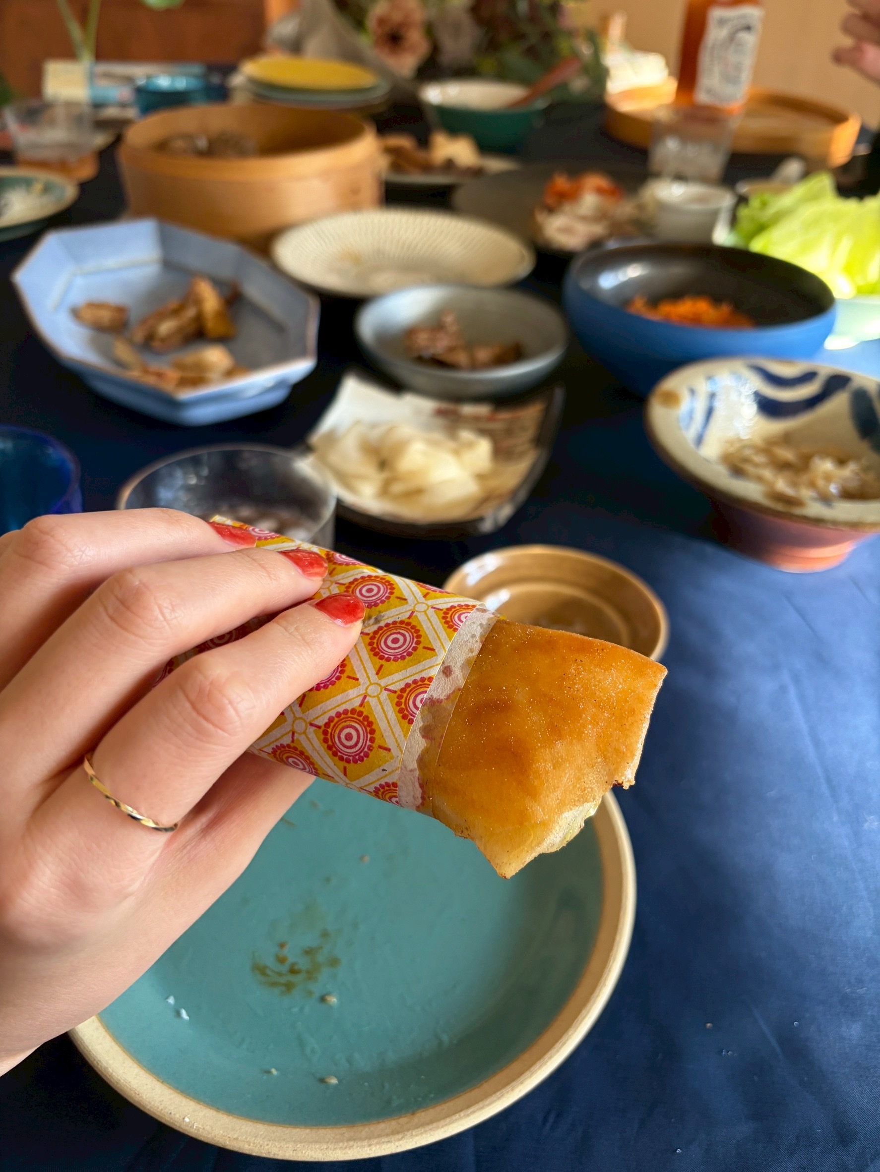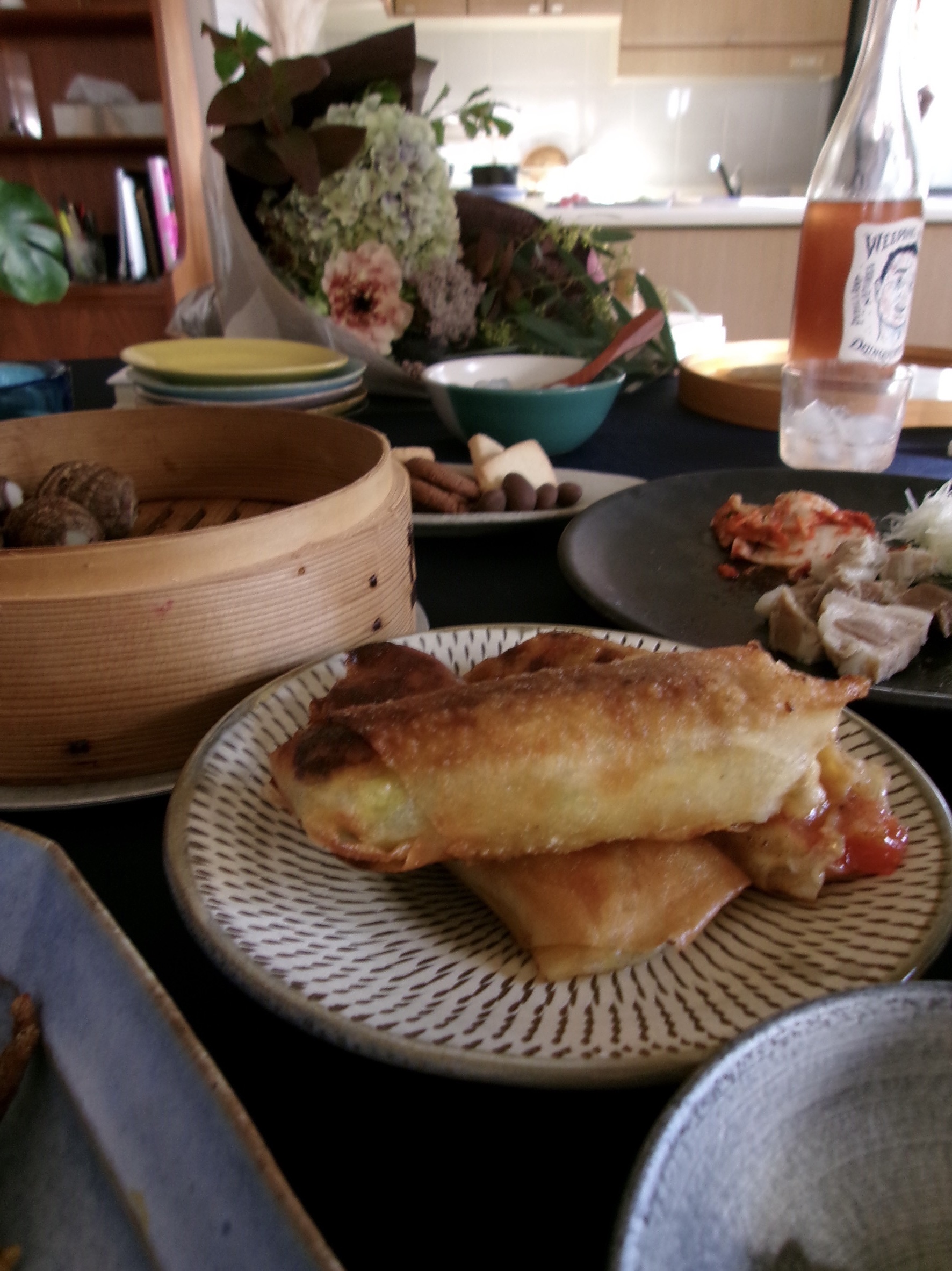 会話もお酒も弾んで調子が良くなるとゴキゲンキッチンドランカーに成り果てる私が作り始めたのは、まさにドラマで見たアレだった。『じゃあ、あんたが作ってみろよ』の主人公・鮎美が作っていたメキシカン春巻き。冷凍庫に作り置きのタコミートと春巻の皮を見つけて、突発的に再現してみたくなったのだった。一口食べてすぐ気づいてくれたのが、嬉しかった。
