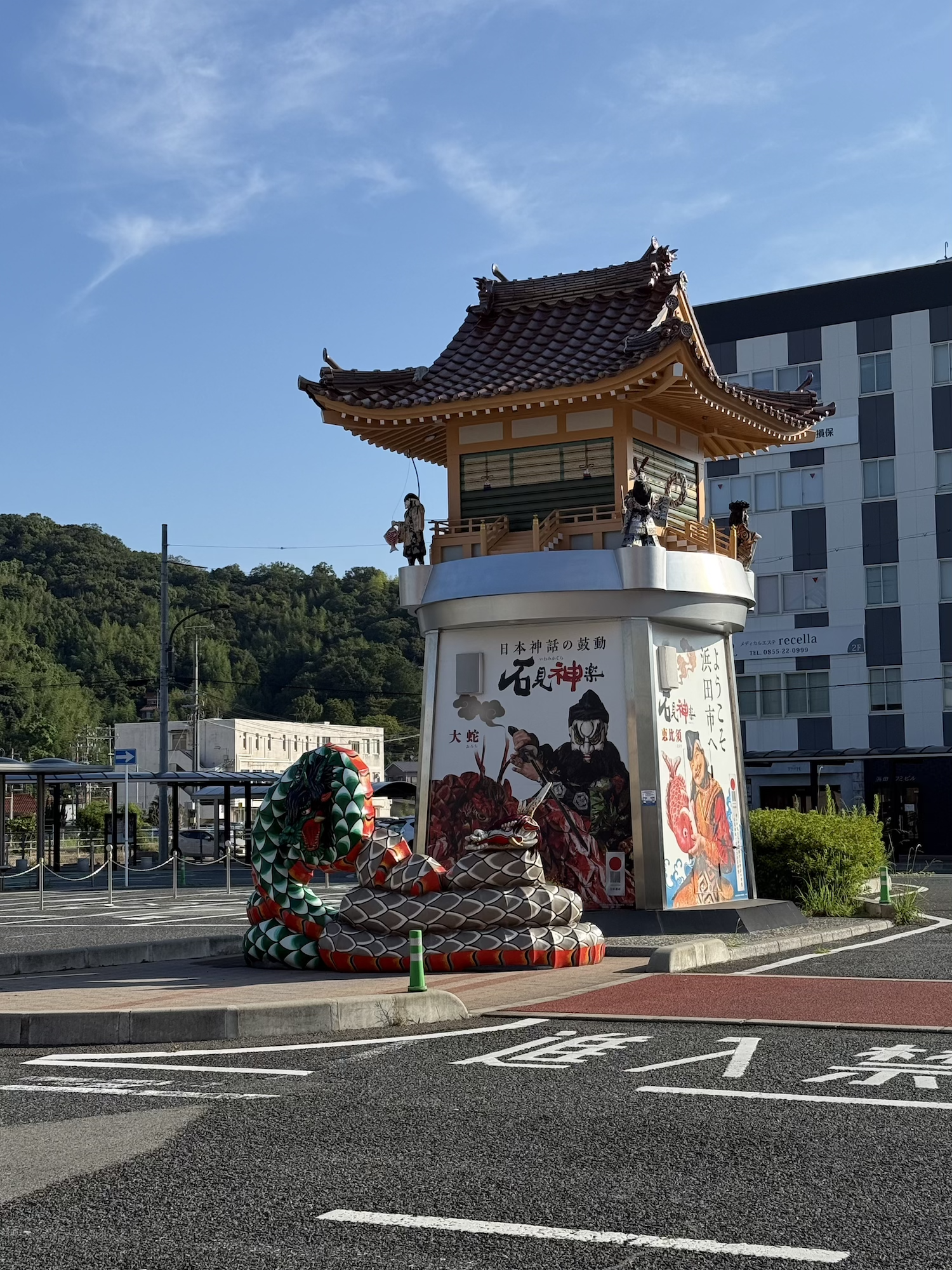 石見空港でレンタカーを借りて約1時間。しばらく山の中を走ると海沿いに出て、浜田には珍しく、抜けるような青空と海が眩しい日だった。