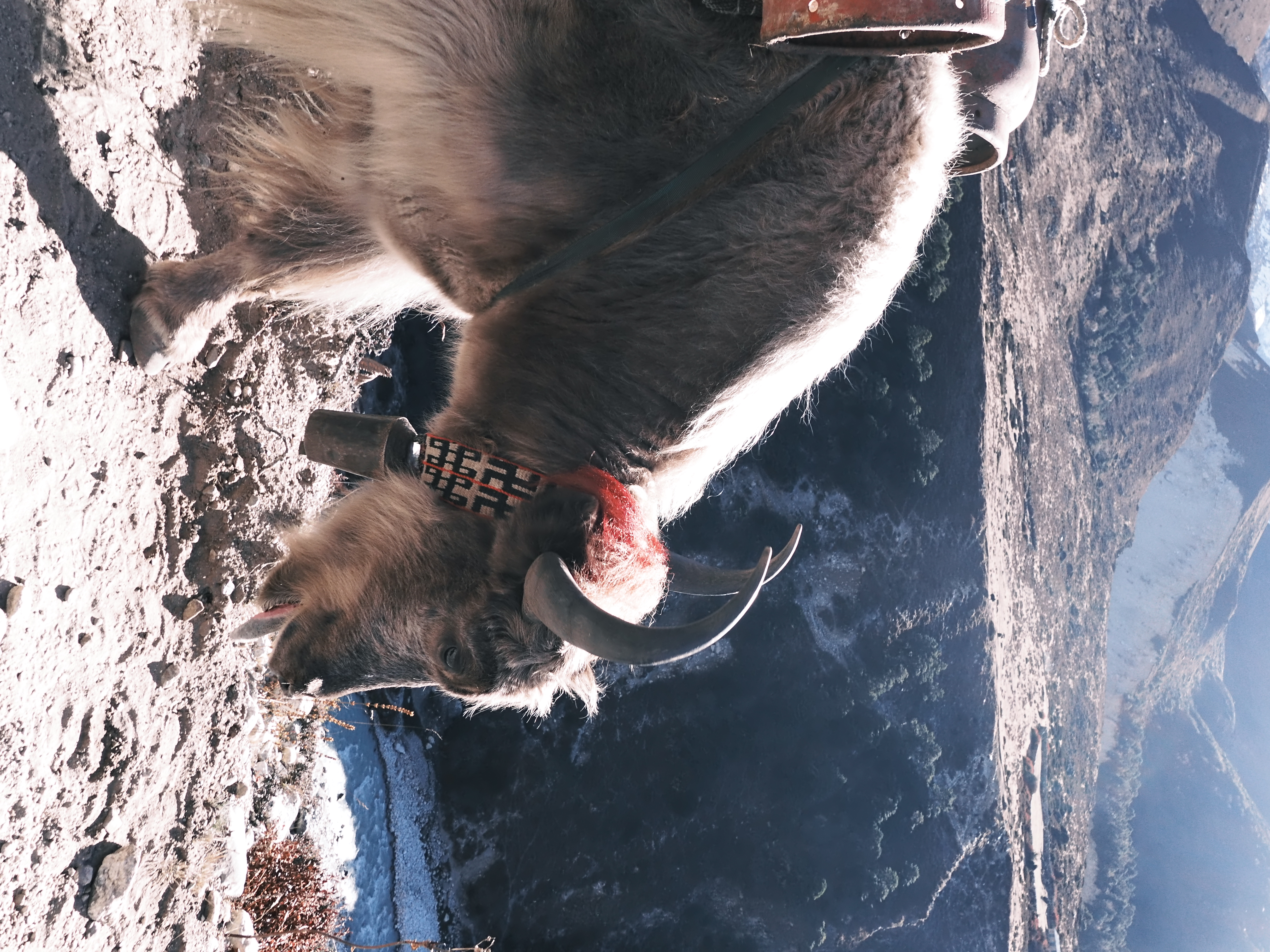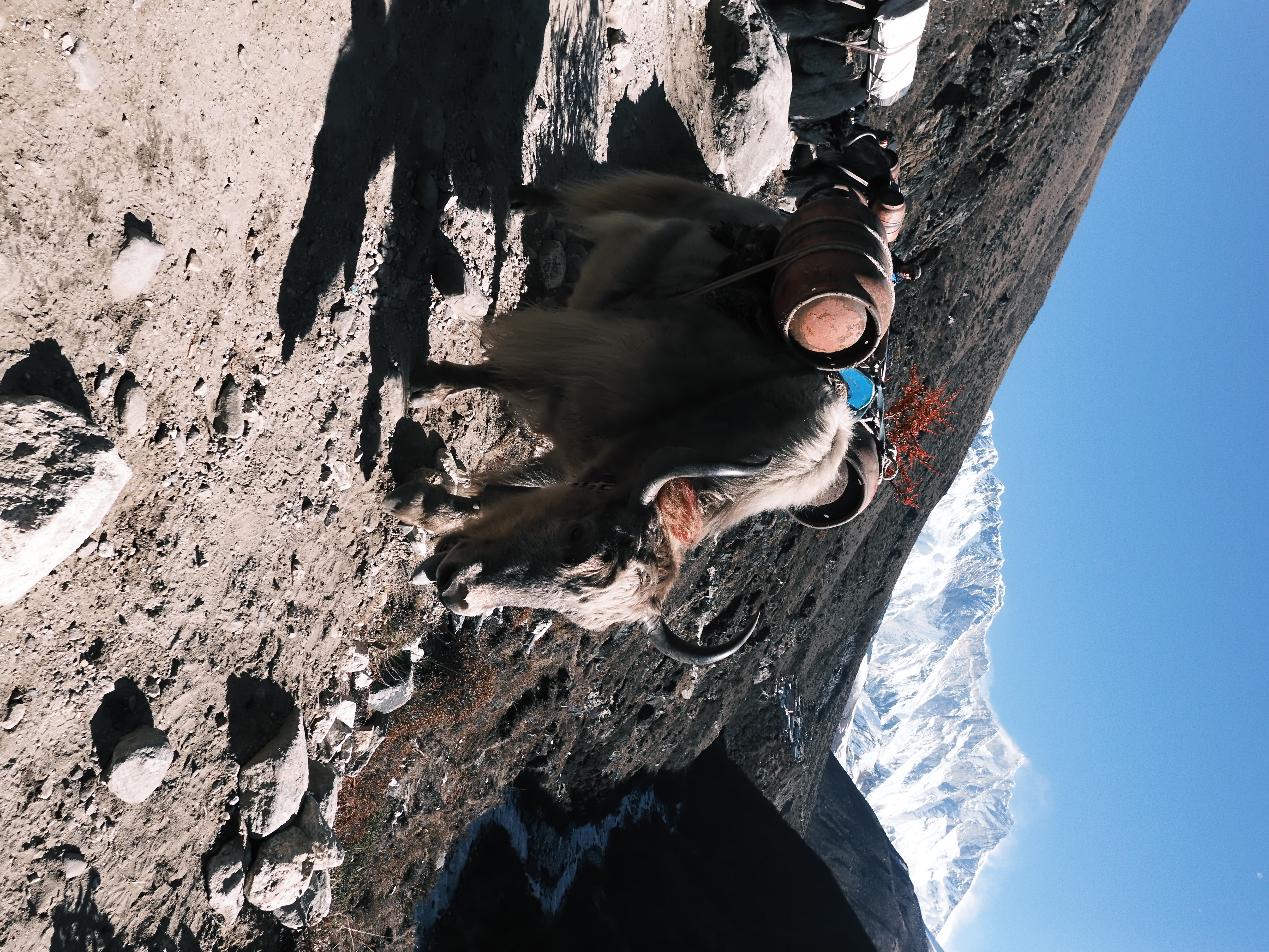 登山道では荷物を運ぶ動物が優先。通り過ぎるのを待つあいだはしばらく休憩ができるし、愛らしい姿をじっくりと観察できるので、私はこの時間がたまらなく好きだ。