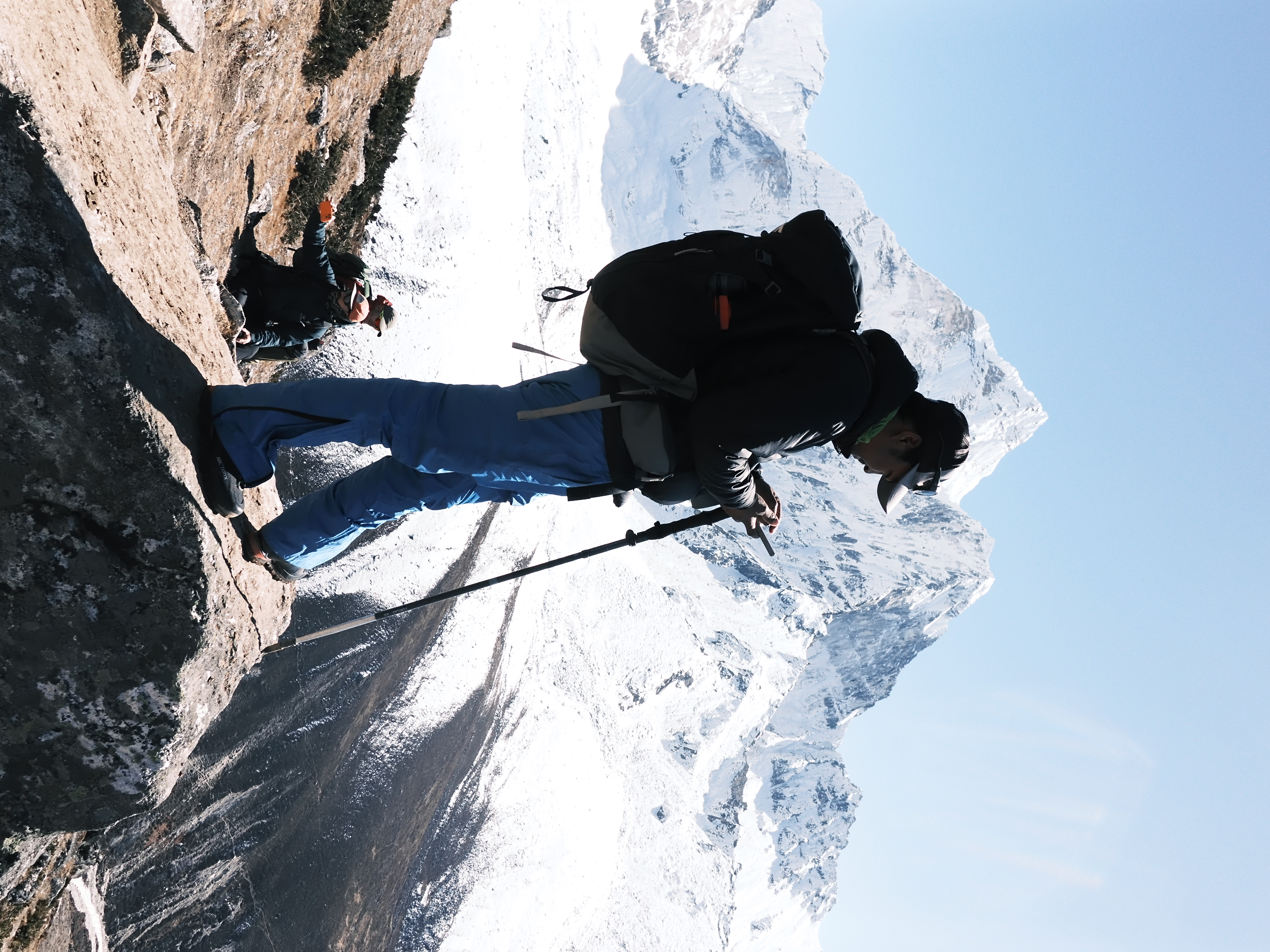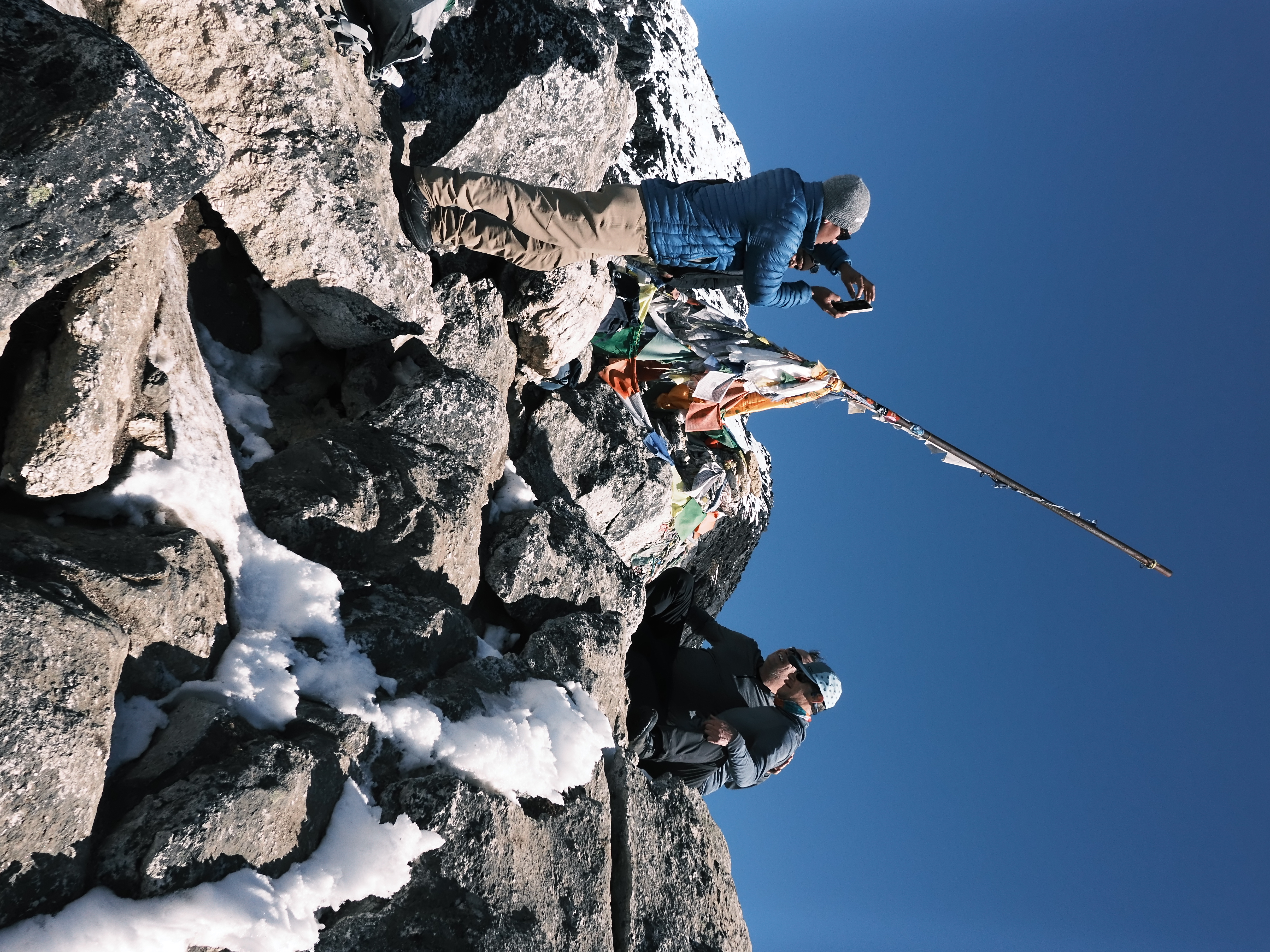 高度順応のために登ったナガルジュンピーク。標高5100m。シェルパ族のダワは信頼できる良いガイドだった。彼となら本当にロブチェに登れるかもしれないと、このとき思った。