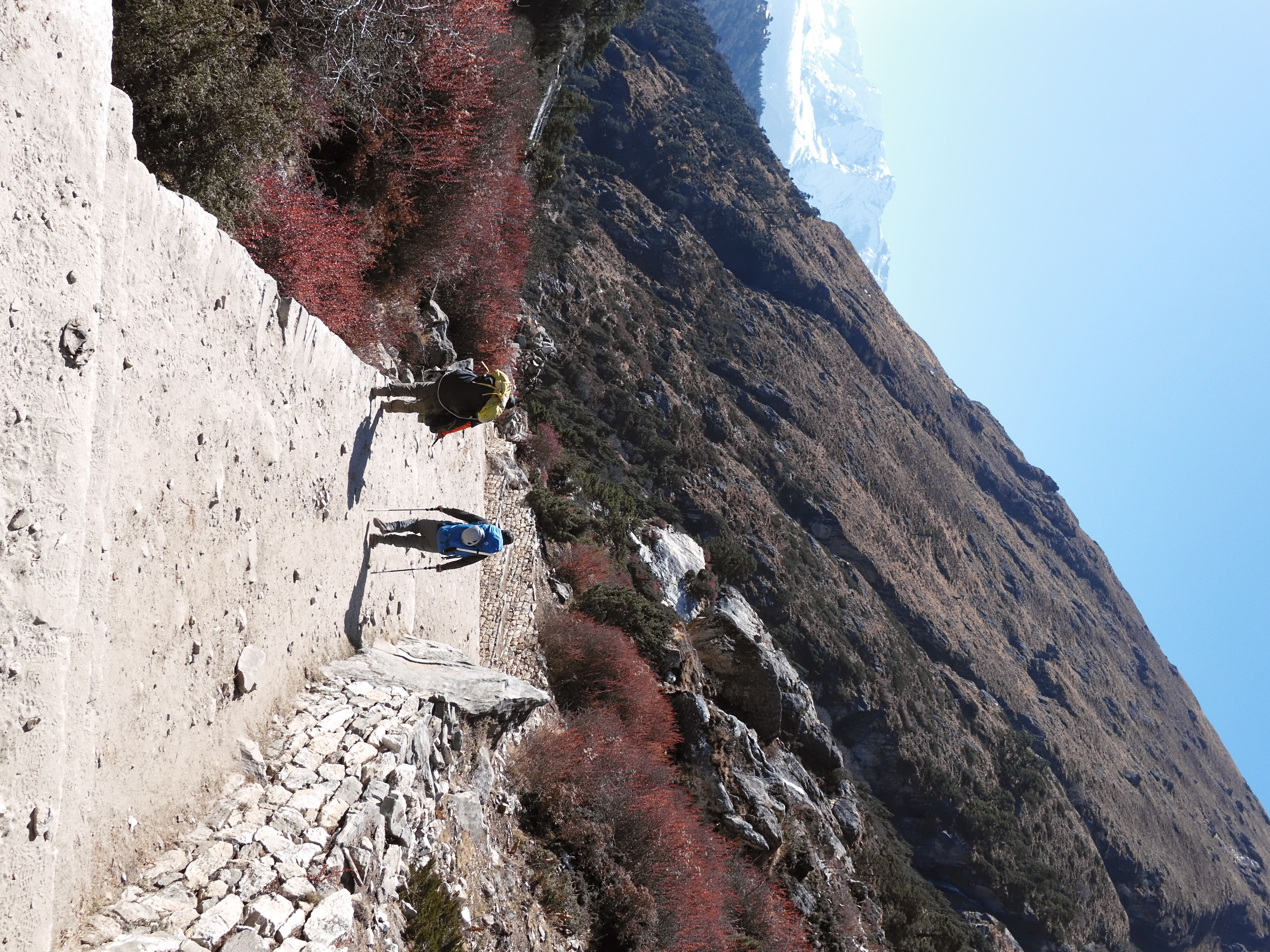 山の斜面に設置してあるフィックスロープに登攀器具をセットして歩いていくため、危ない箇所はほとんどなかったが、暗闇の中でこの岩場を登るのには少し苦労した。(写真は下山時に撮影)