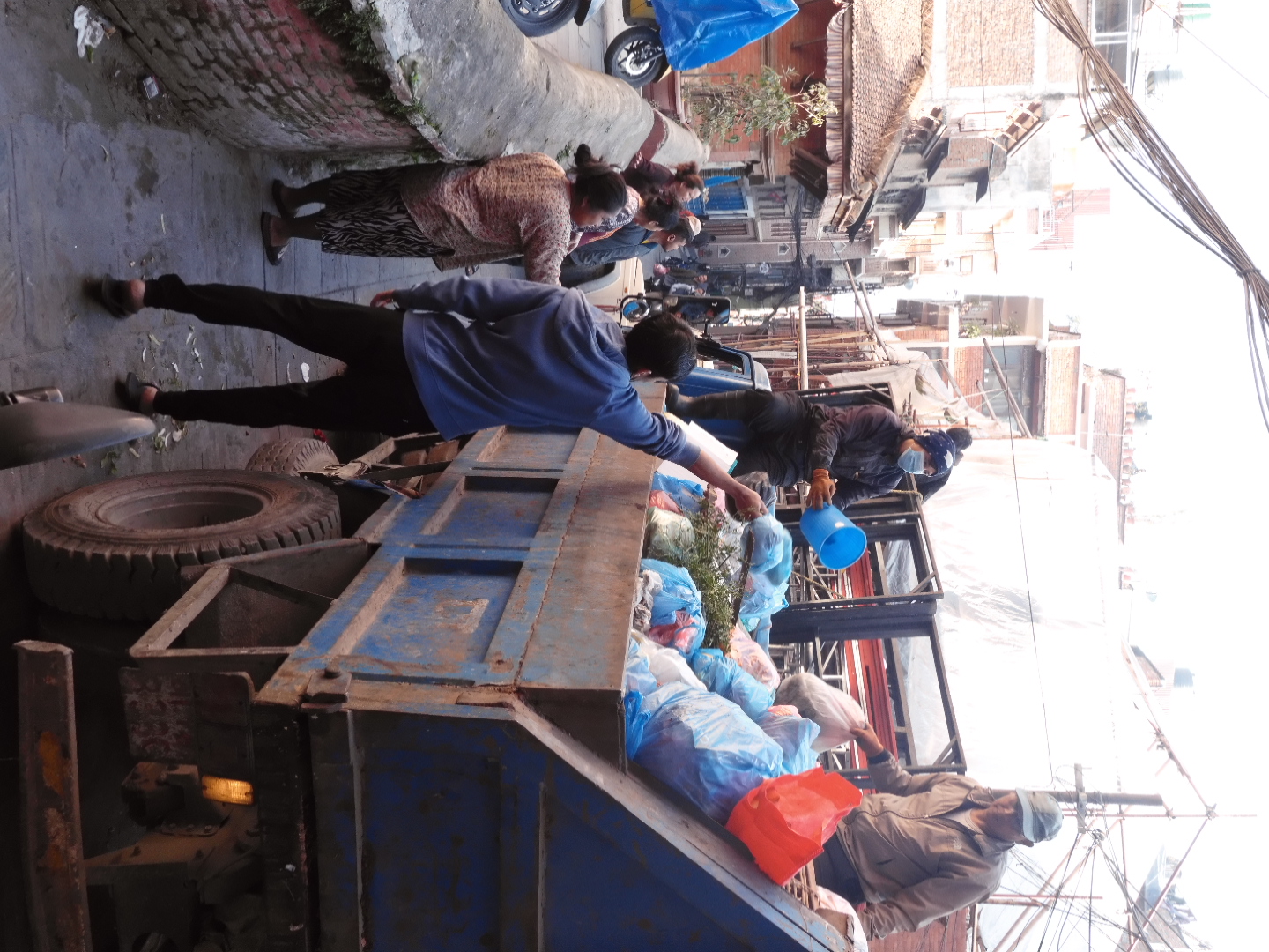 ゴミ回収の日。慌ててゴミを出しに来るのはどこの国でも一緒なのだとわかり、親近感が増す。