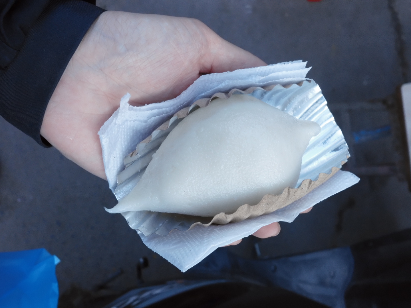 ヨマリというお団子のようなお菓子。中には黒胡麻ペーストか、カスタードのようなペーストが入っている。思ったよりも大きくてずっしりしていたので、ひとつでお腹いっぱいになった。