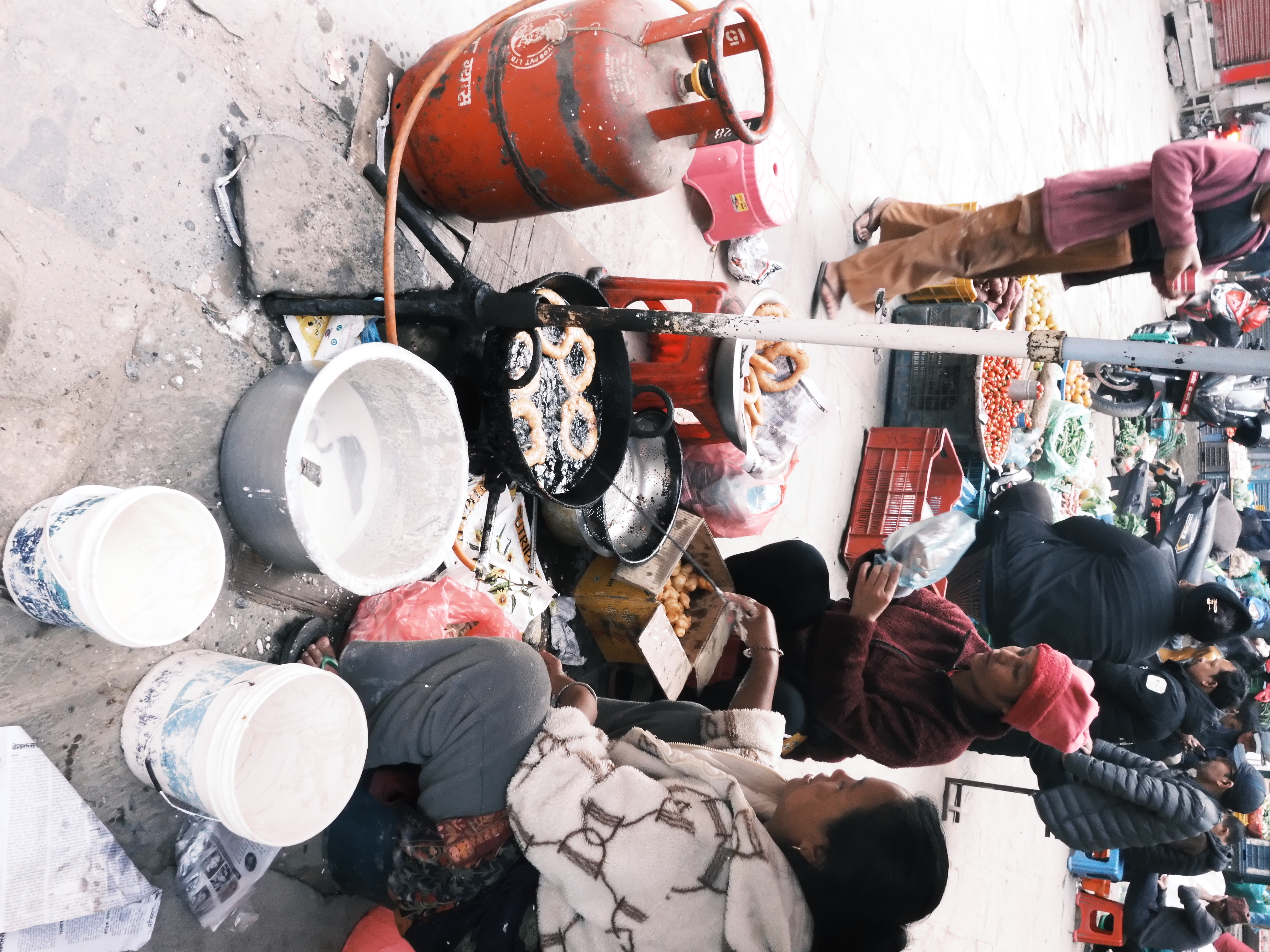 アサンチョークの朝市にて。赤とオレンジの組み合わせが素敵。この装いに影響されて、帰り道でつい赤いストールを買ってしまった。