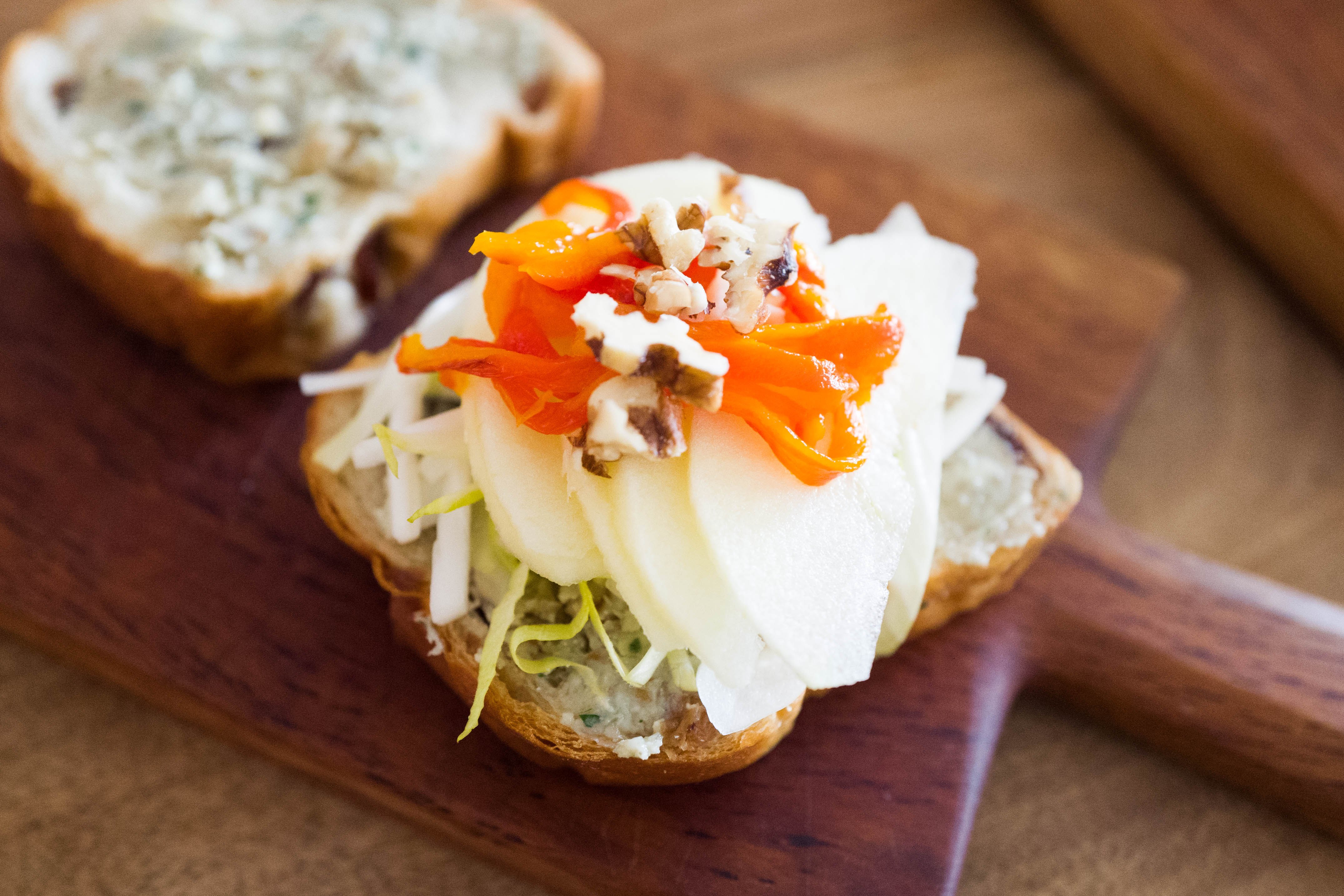 90年代に出版された「DEAN & DELUCA COOK BOOK」という分厚い料理本がある。写真はひとつもなく、文章だけのレシピ集だ。ぼくはこの本が大好きで、時間があるときに、気になるレシピを辞書片手に作っている。「ロックフォールチーズのサンドイッチ」はそうして見つけた一品。作って食べた途端、そのおいしさに驚いて、それからというもののわが家の定番になった。本には写真がないから、作ってみないとその料理がどんな感じなのかわからないのがまた楽しみだ。作ってみてわかる、なるほど、この料理はこういう感じだったんだ、というように。それは正解なのかどうかわからないけれど、レシピ通りに作れば、どうであろうとも正解だと信じている。ロックフォールチーズに、バターとブランデーを合わせて、フードプロセッサーでなめらかに混ぜ合わせたペーストに、りんごのスライスを乗せたサンドイッチである。グリルした赤ピーマンのスライスとくるみを添えて出来上がり。これもまたぼくにとってのニューヨークの味である。