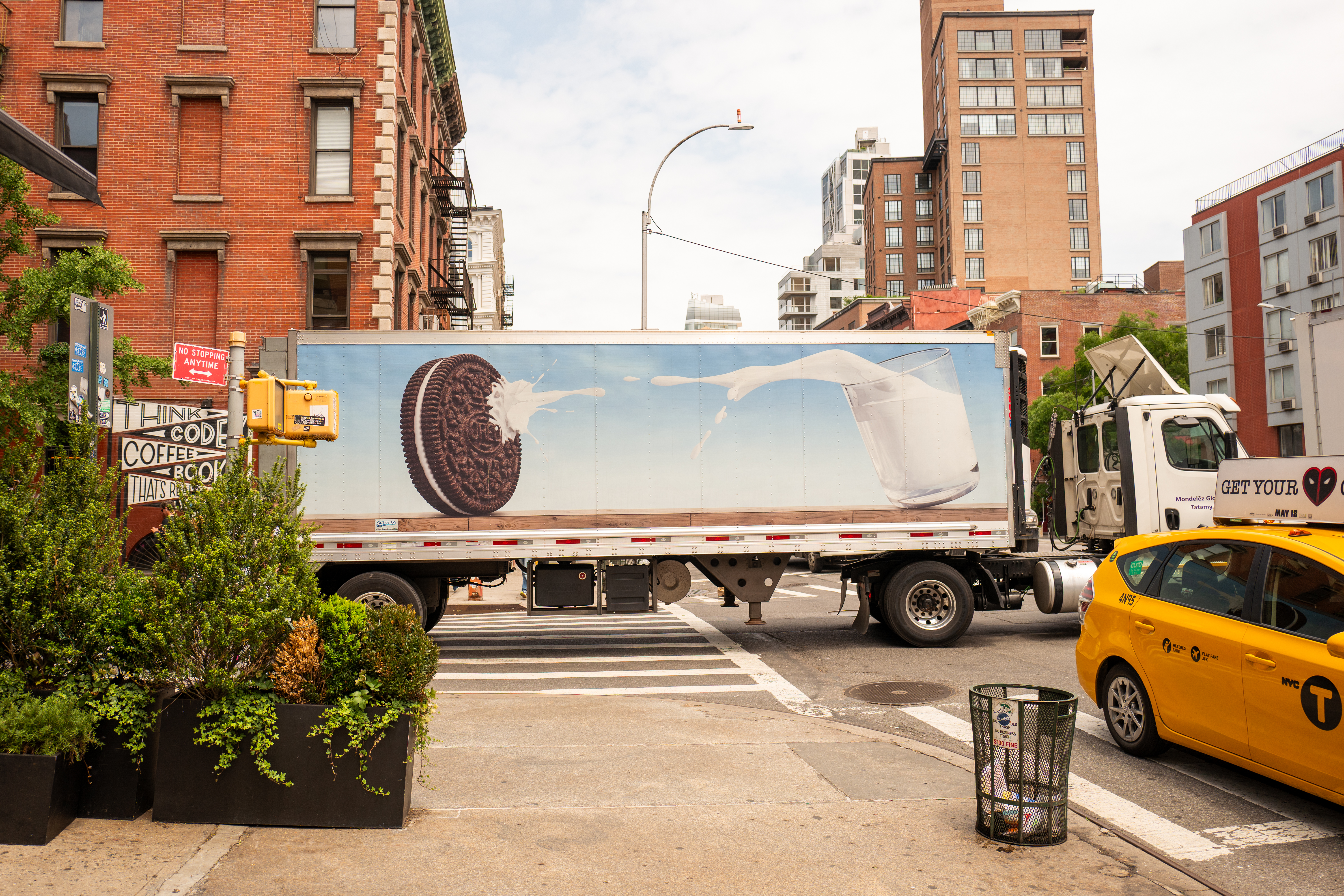 帰り道、信号待ちで足を止めた。交差点の向こうを、大きなトラックが横切っていった。白い車体の側面に大きな絵が描かれていた。オレオのチョコクッキーに、牛乳が飛び散っている。広告のようだけど、そこには言葉や文字はひとつもなかった。