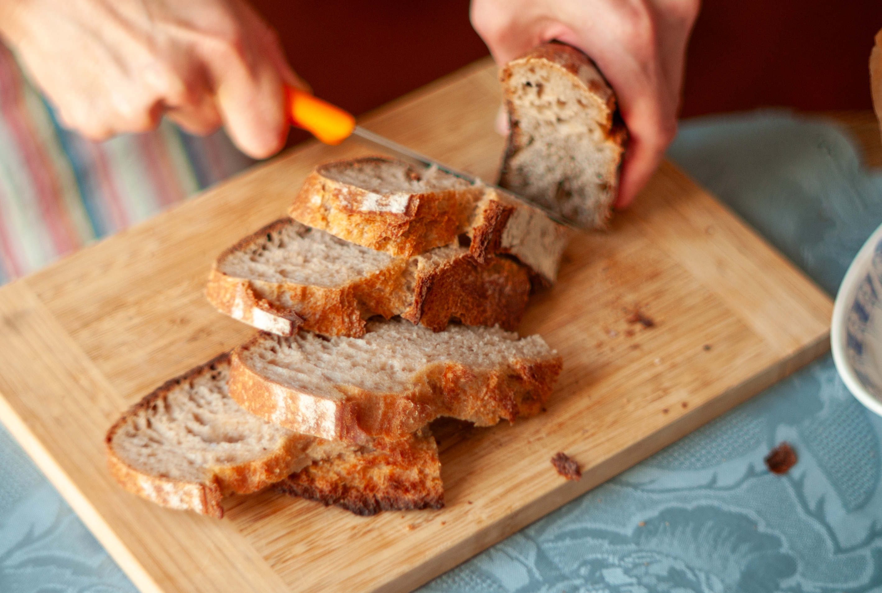 パンをスライスして、それをまた、食べやすい大きさに切り分ける。